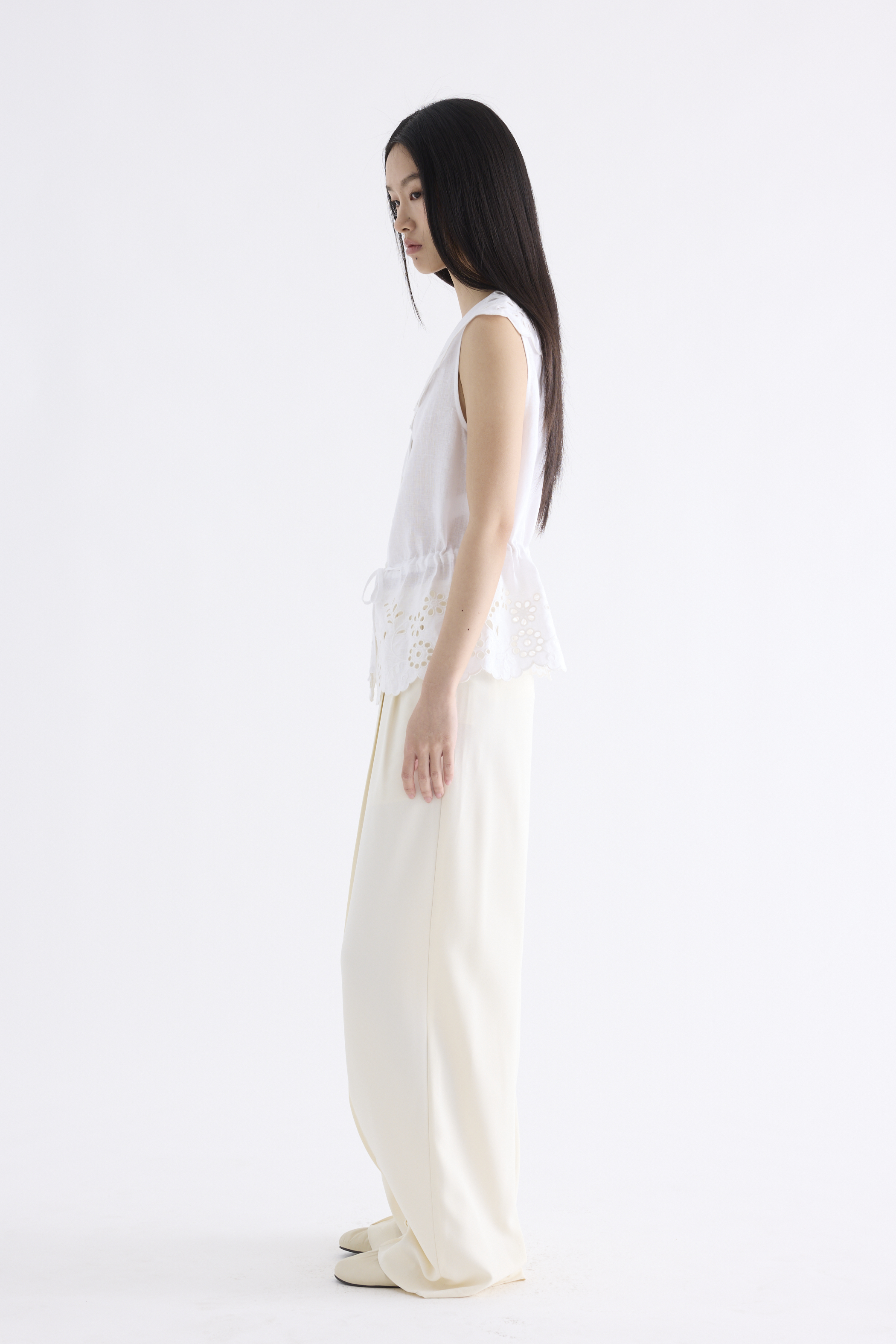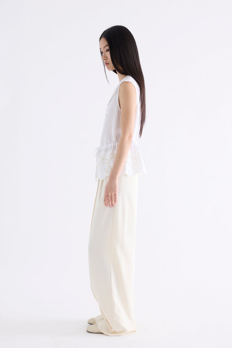 From the Postscript collection. This sleeveless top features statement lace collars and a lace hem, a V-neckline and a button-down front. Its fit is adjustable via a drawstring waist tie.