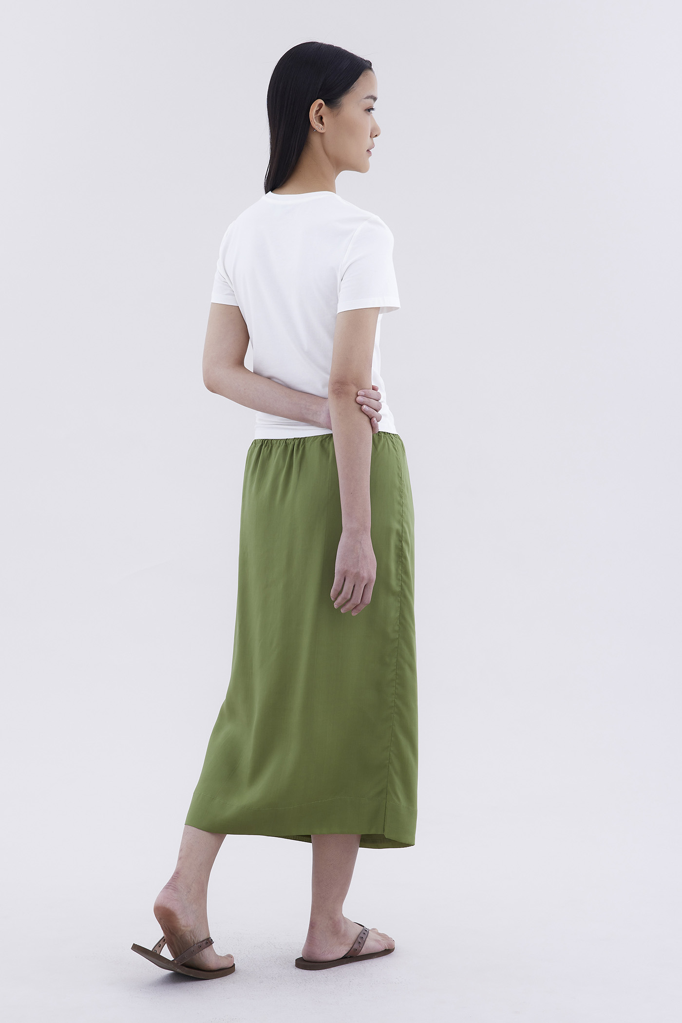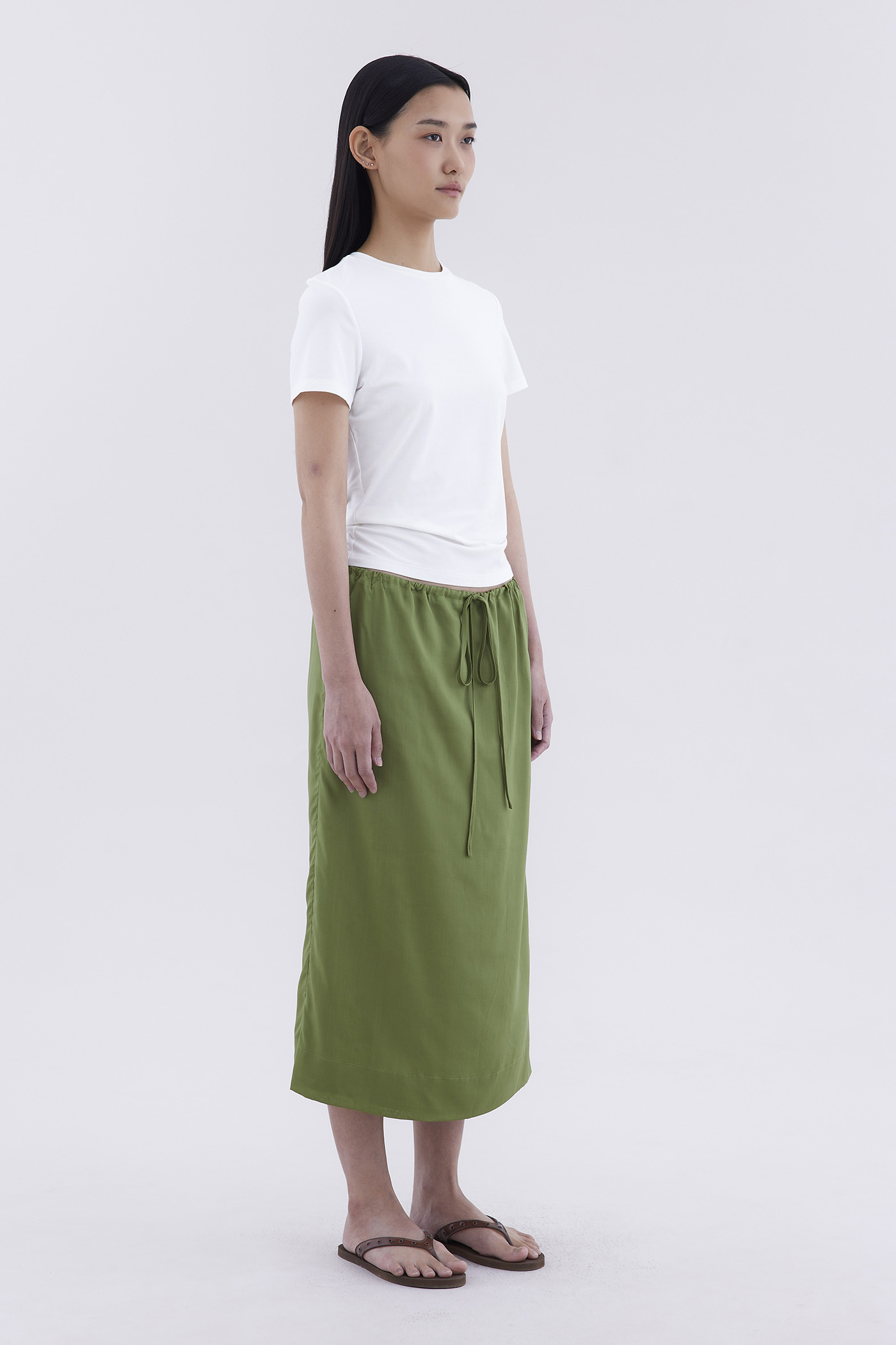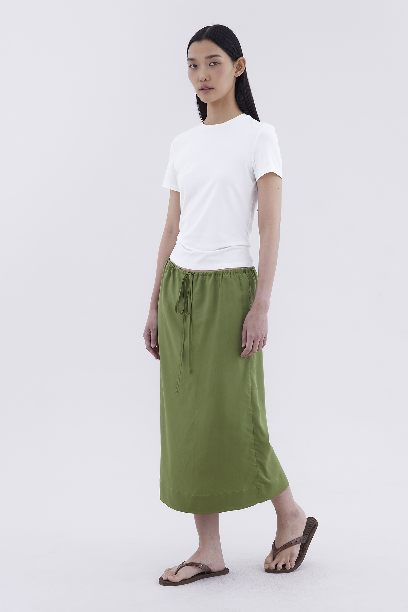 As easy as it gets. Made from light and fluid Tencel, this midi skirt features an elasticated drawstring waistband and a relaxed fit.