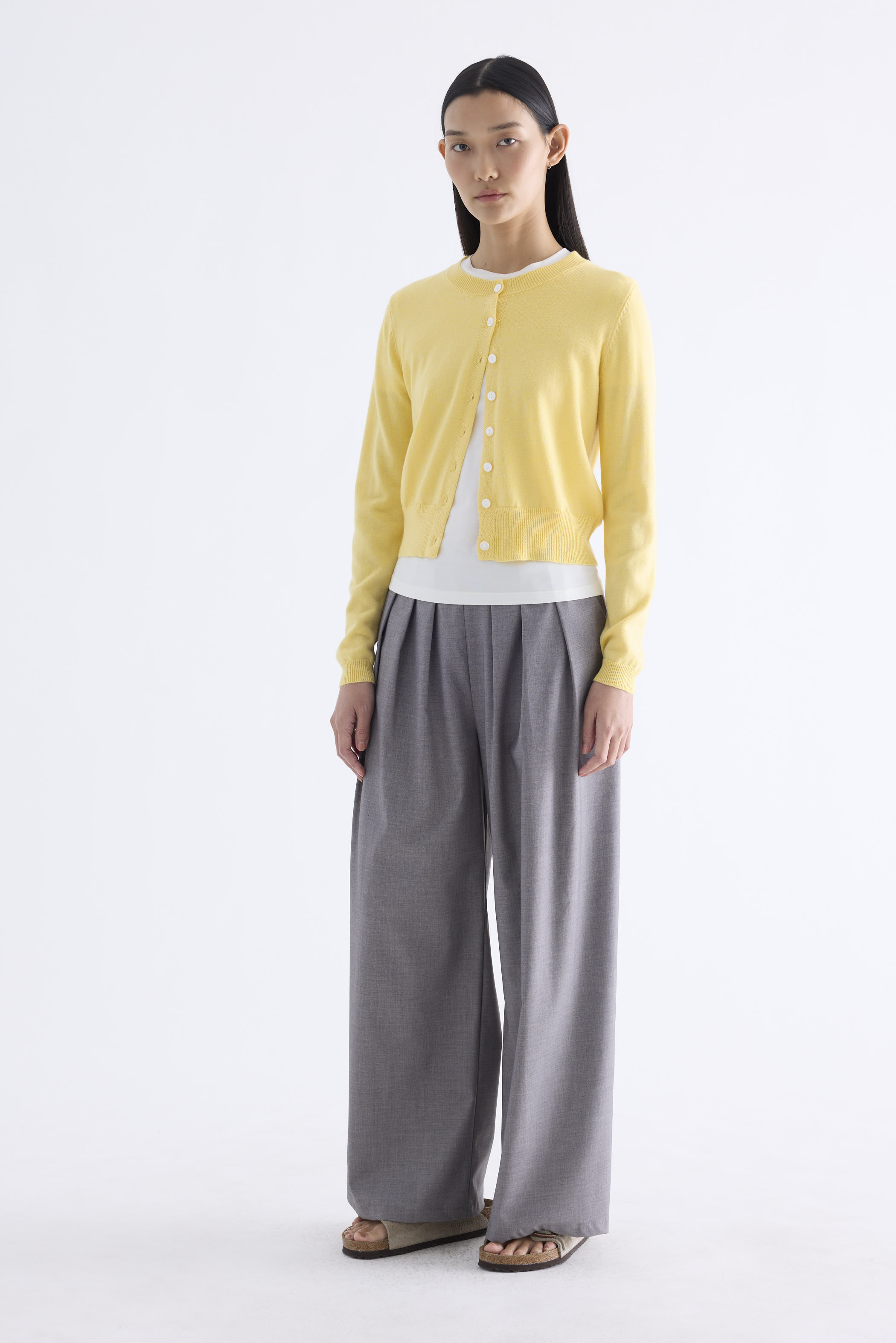 Cosy. Made from soft and smooth knit, this cardigan features a ribbed round neckline, ribbed hem and a button-down front. Worn in a slim fit.