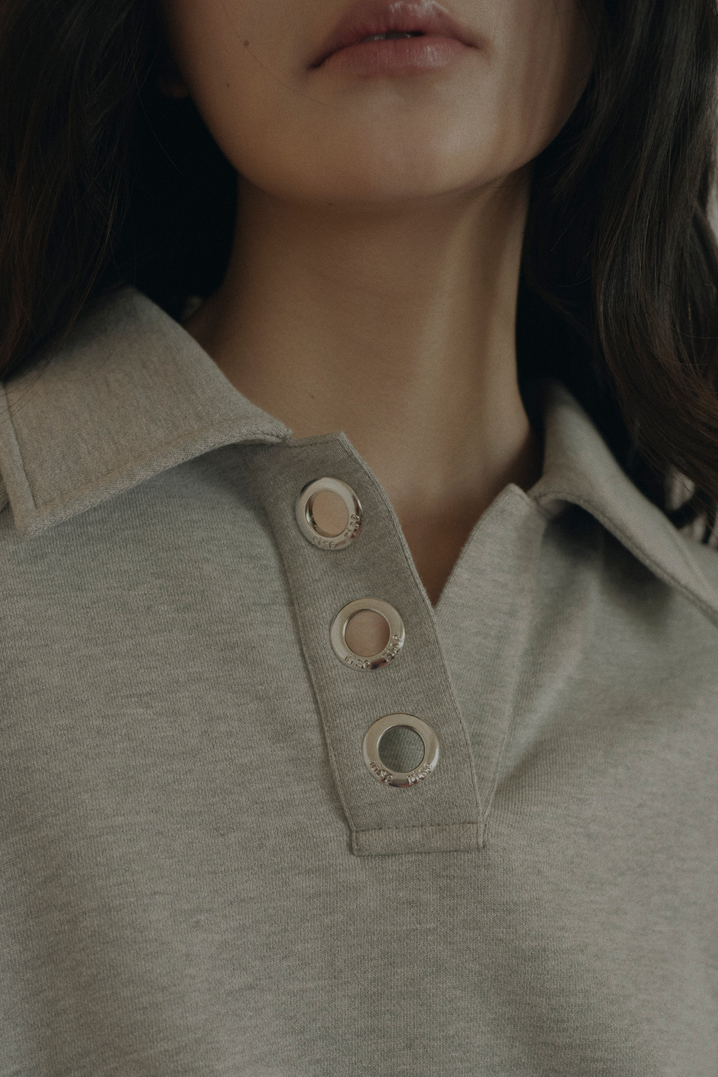 Made from cosy fleece with a marl finish, this sweatshirt features softly structured collars, ribbed hems and ‘rise rise’ branded eyelets at the front. Worn in an oversized fit.