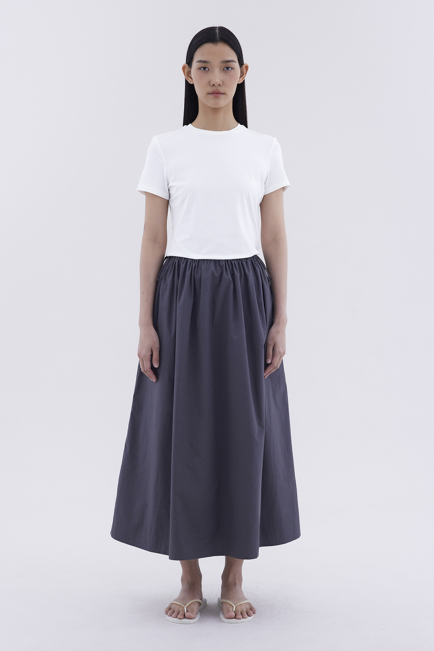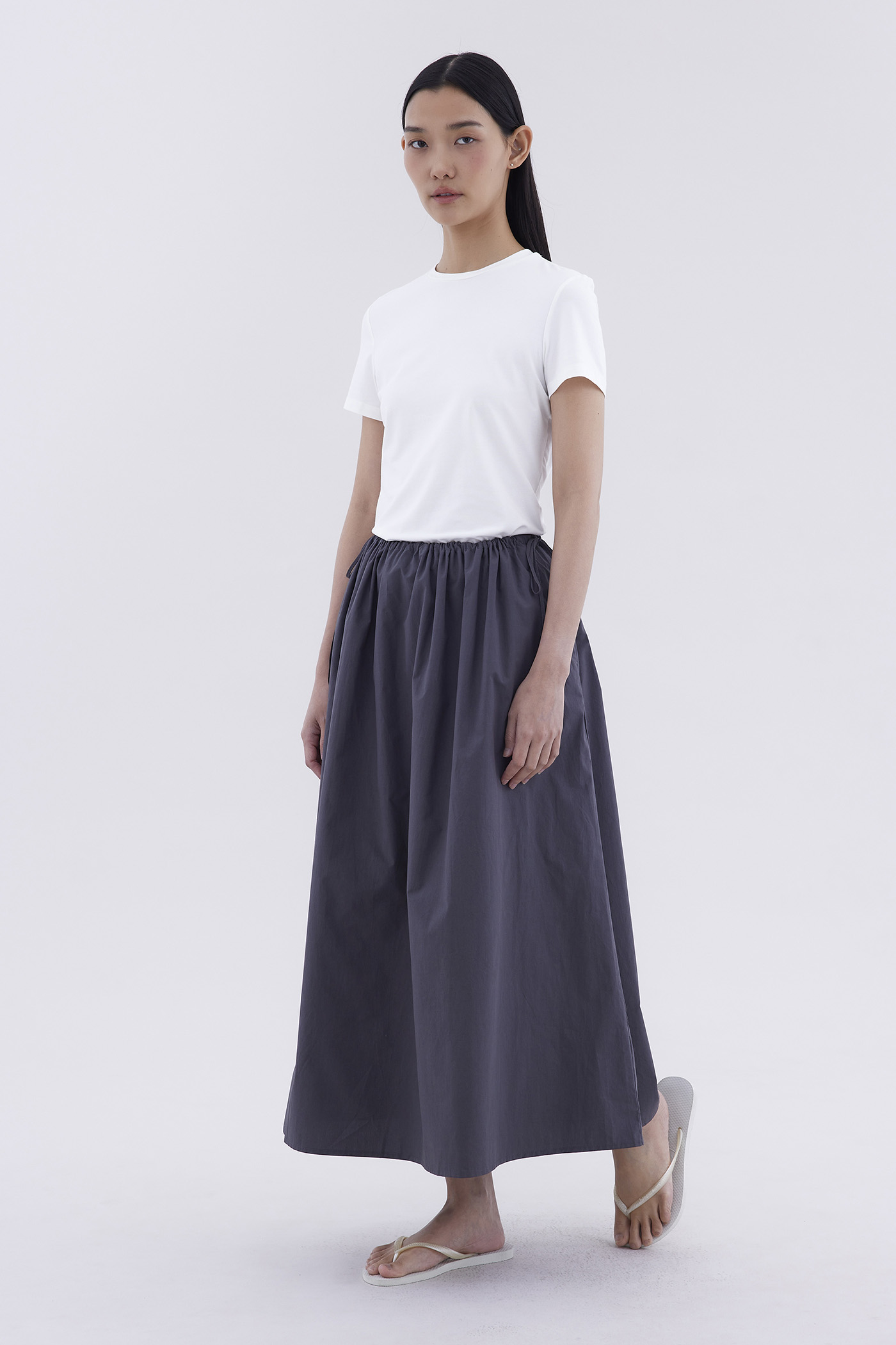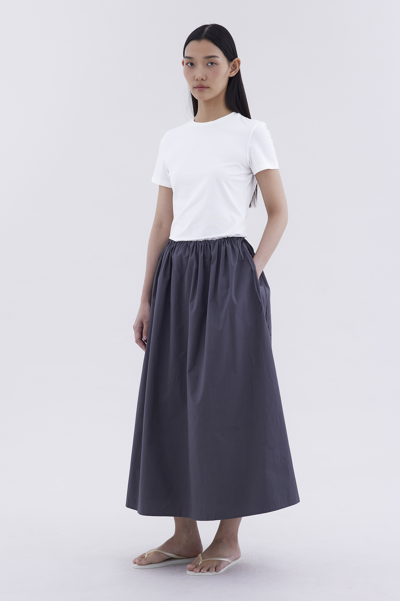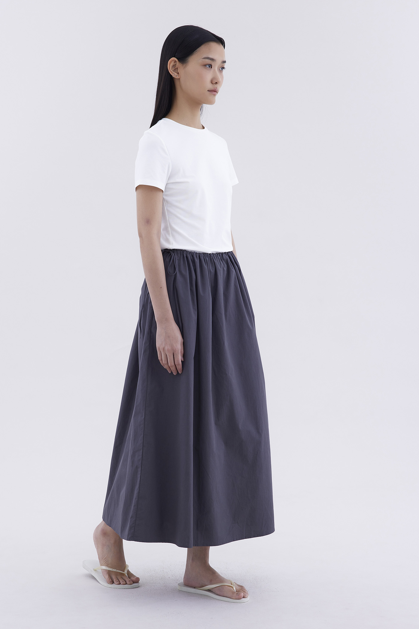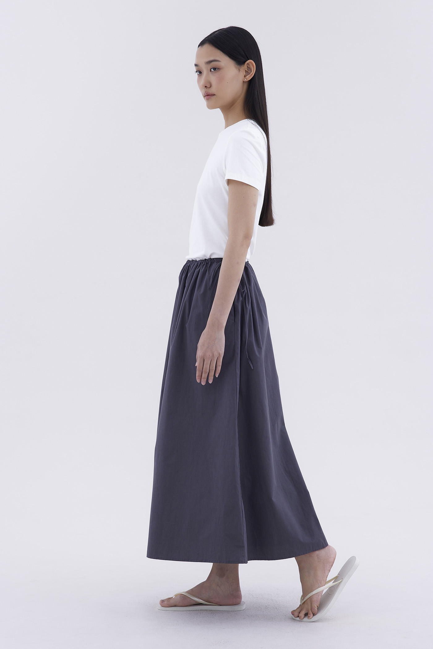 Double the detail. Made from crisp and softly structured cotton, this maxi skirt features a drawstring waistband with side-ties and a flared A-line silhouette.
