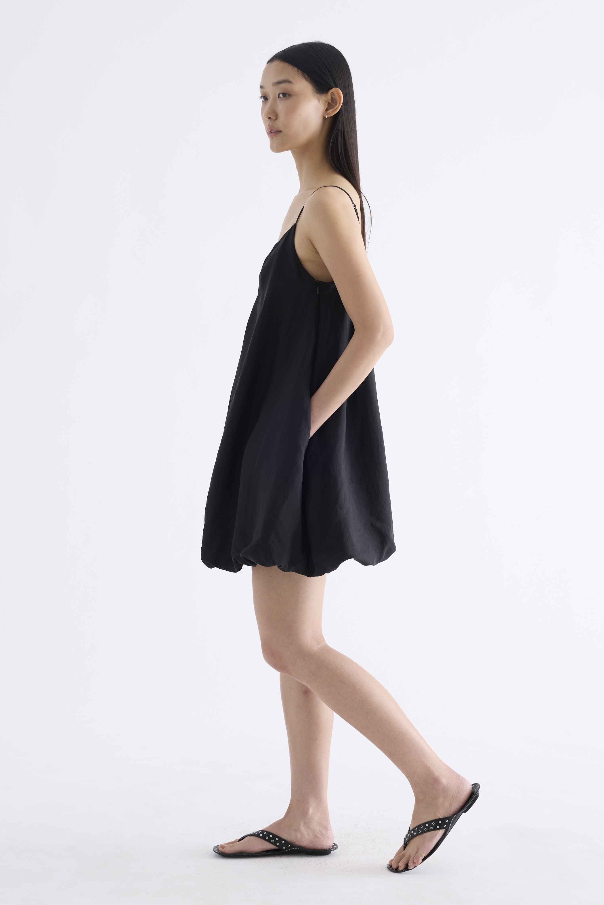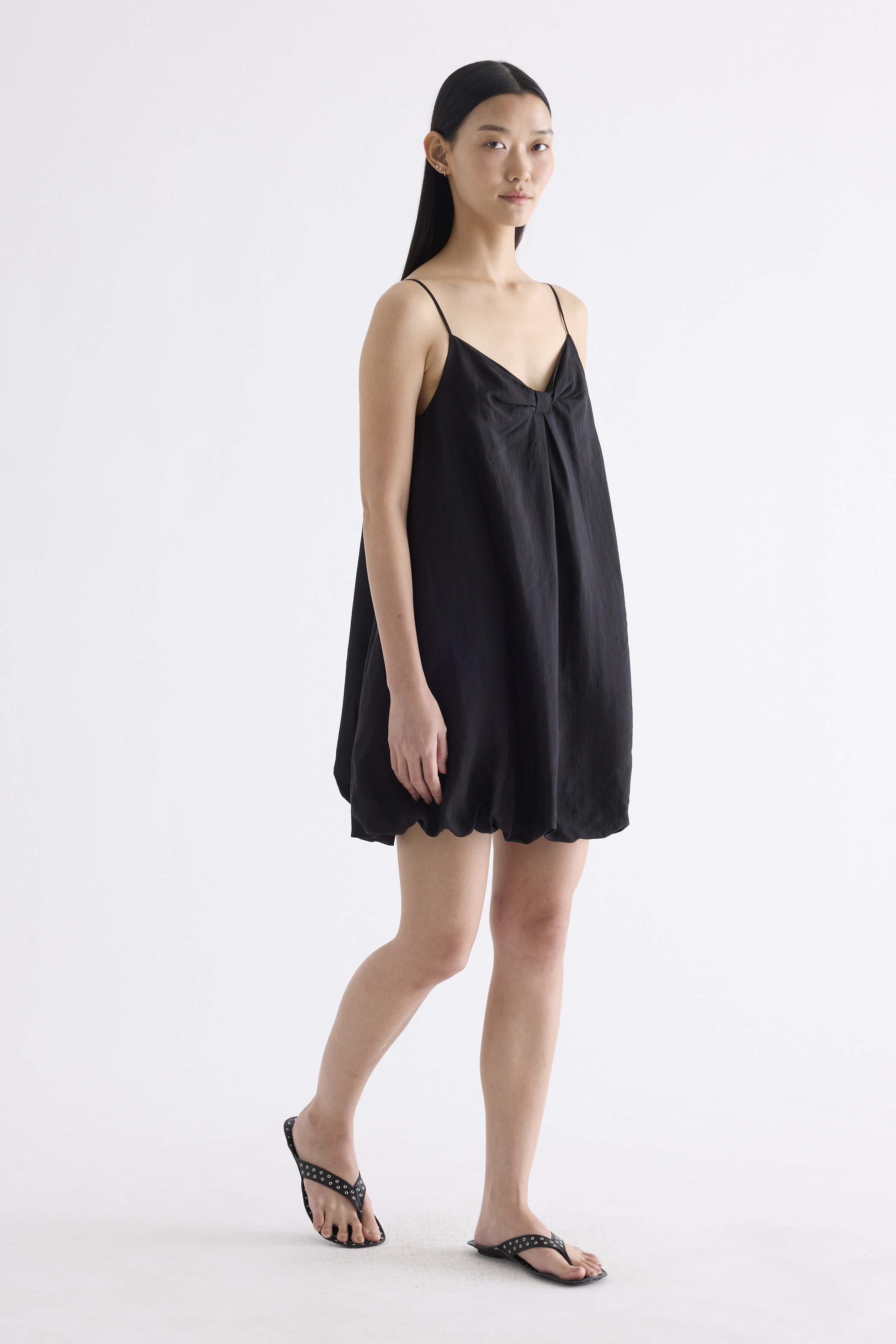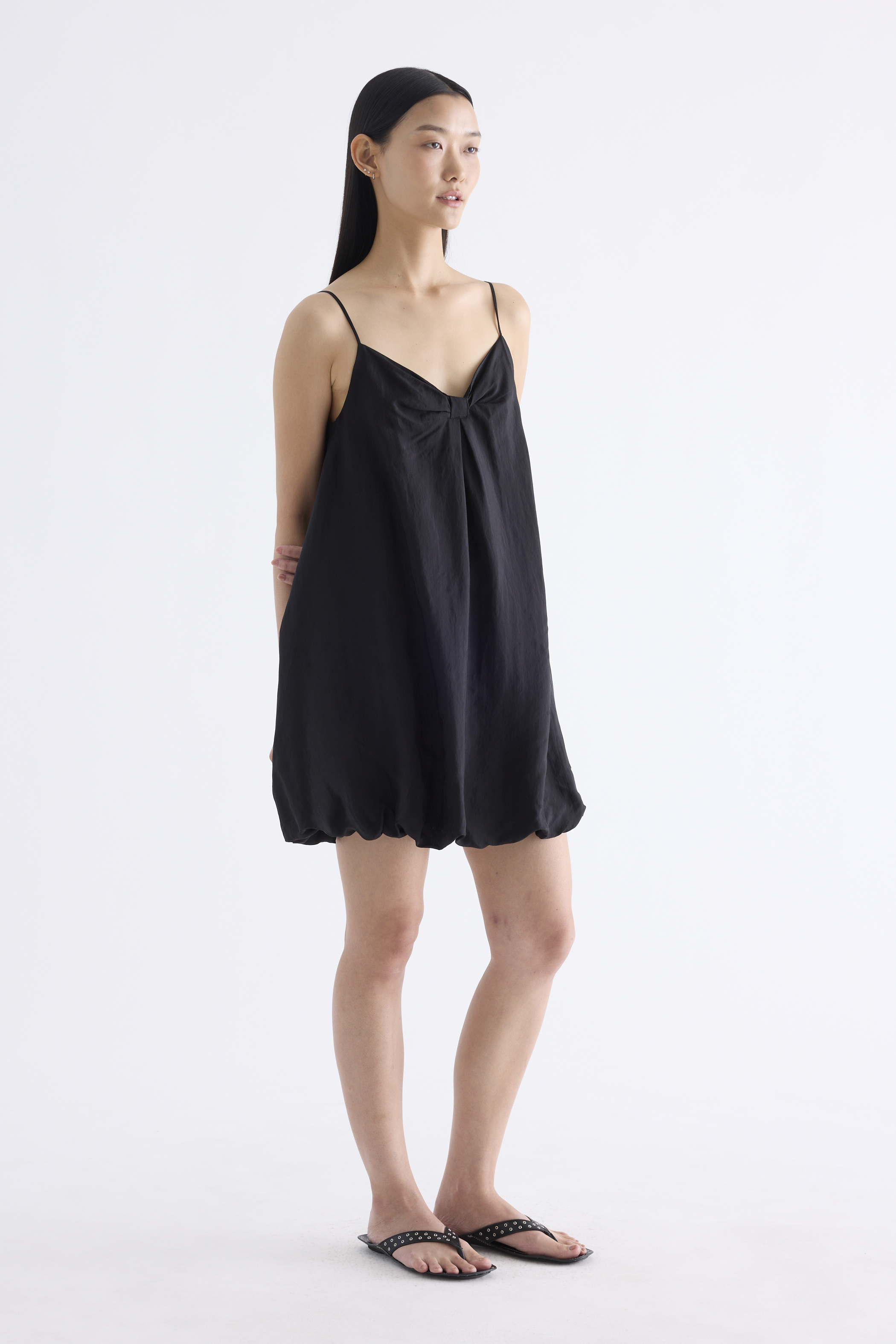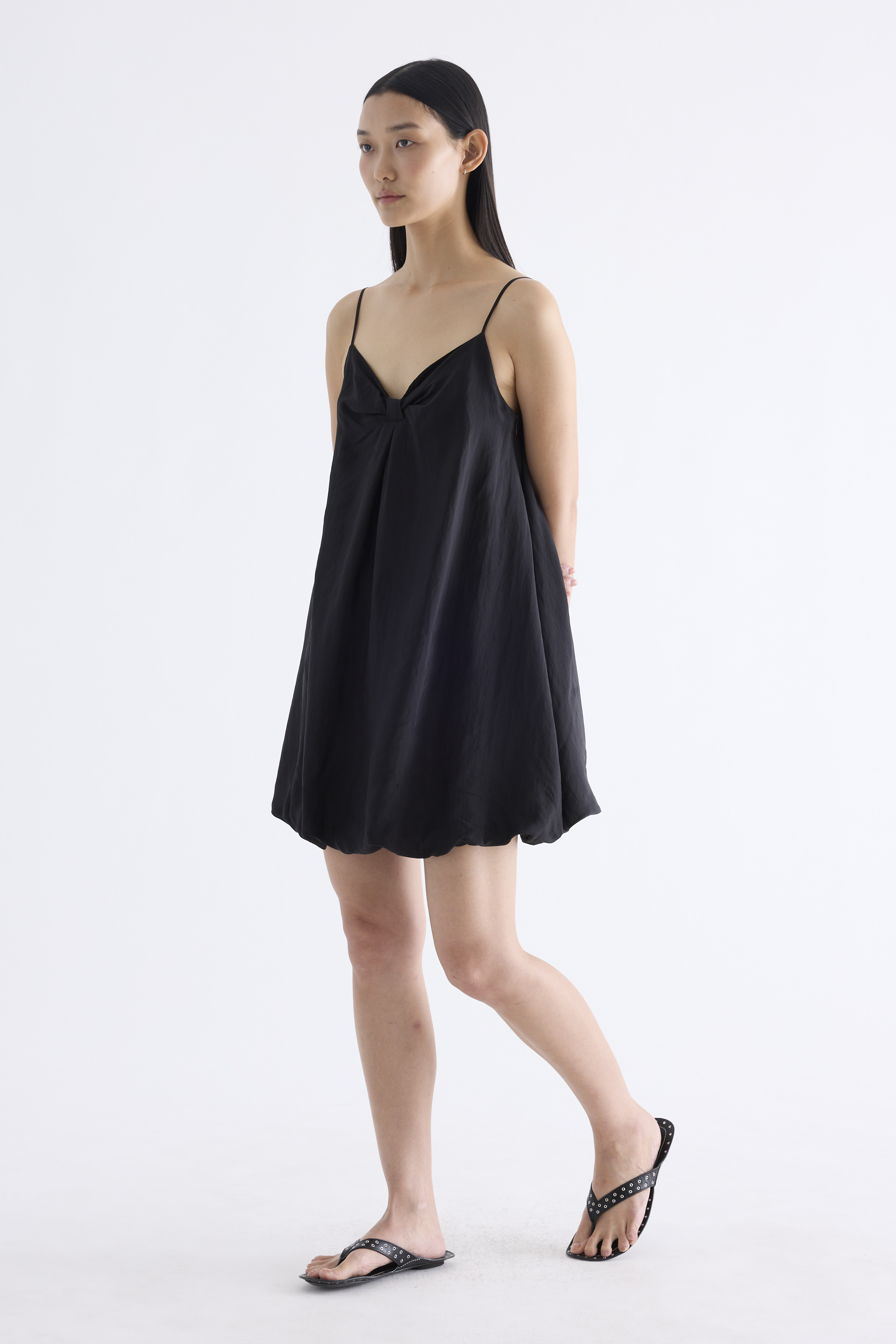 Dress for the occasion. Made from soft and smooth fabric, this sleeveless dress features a bubble hem, bow neckline, side zip and slim adjustable shoulder straps. Fits relaxed and above the knee.