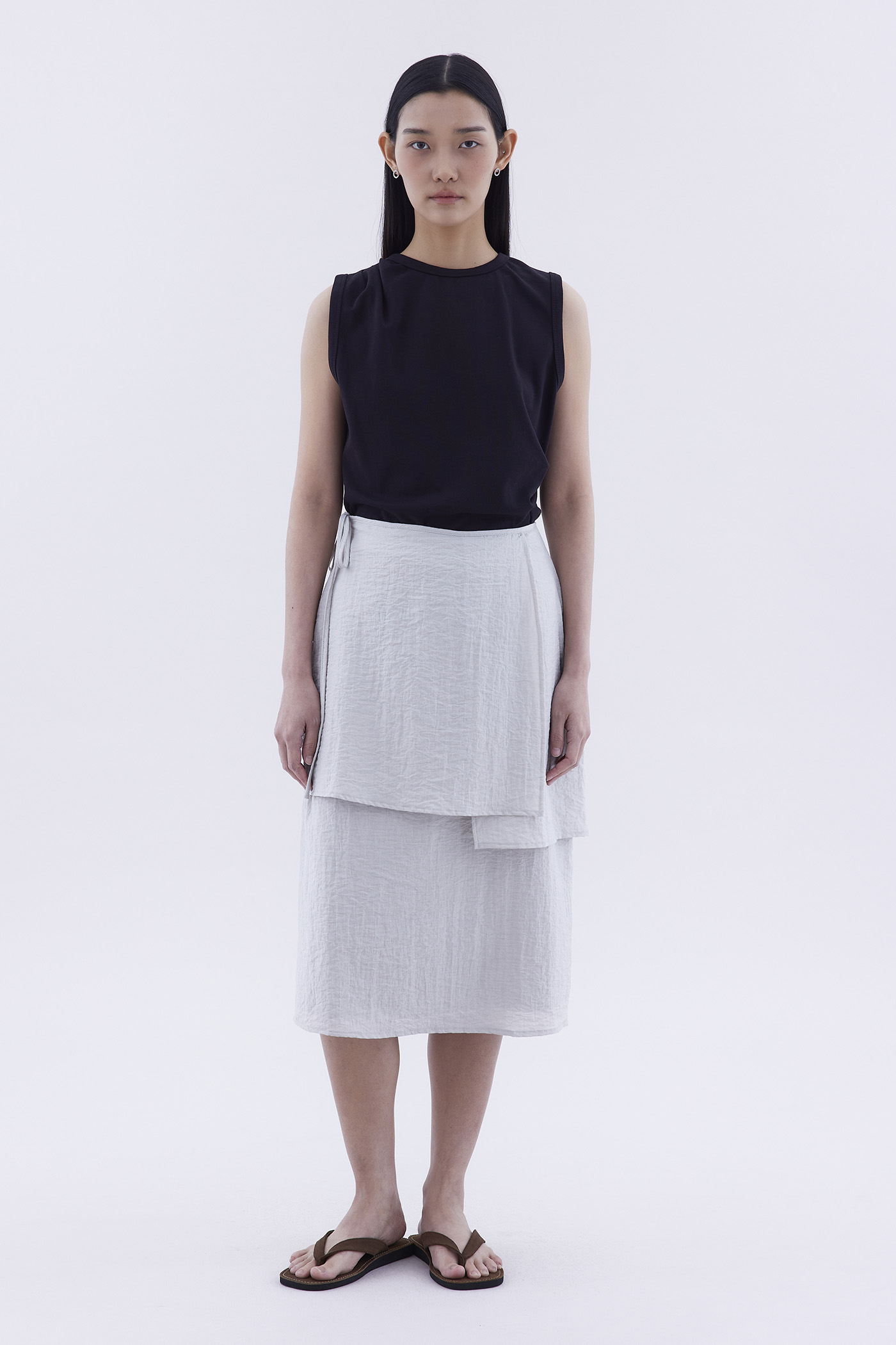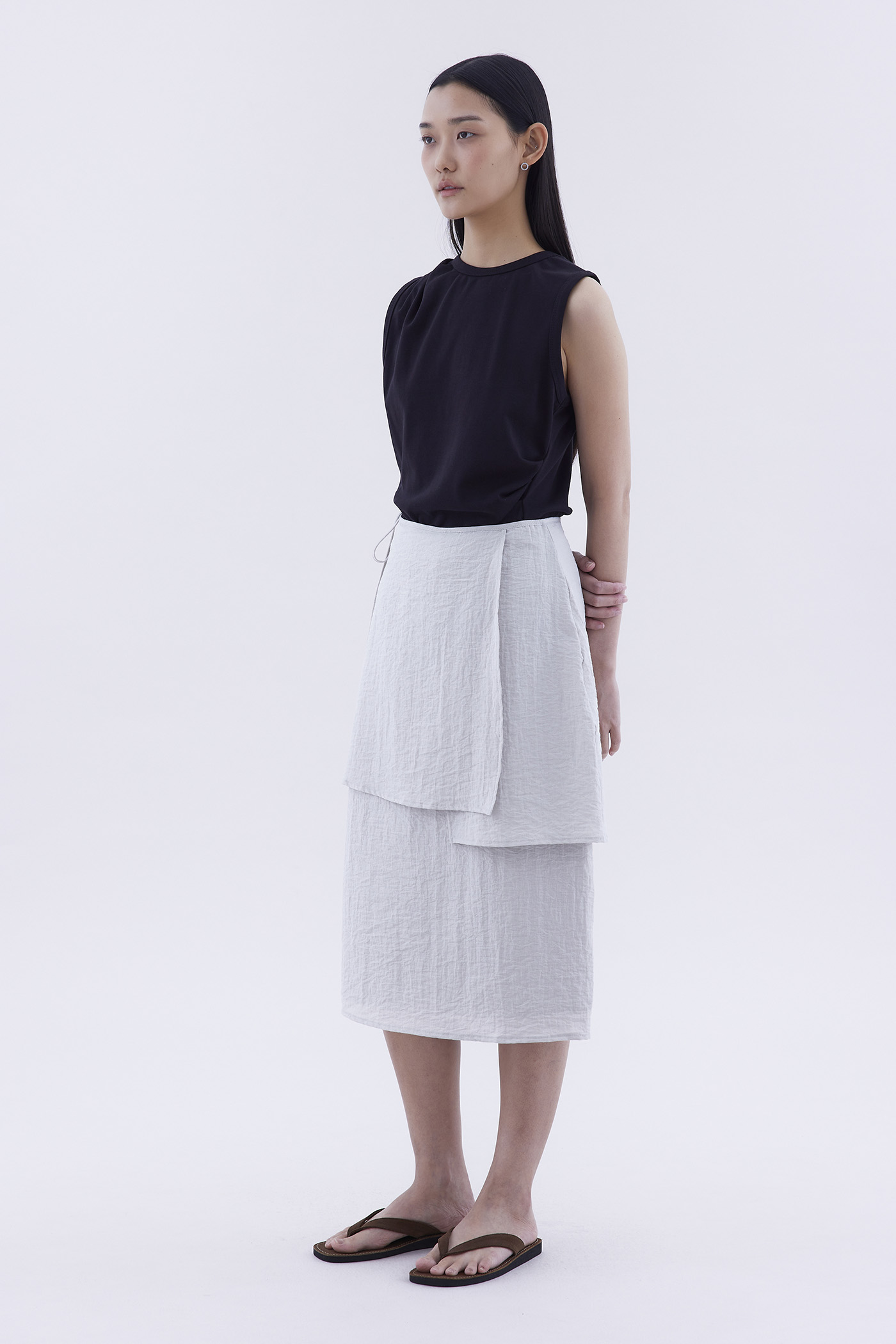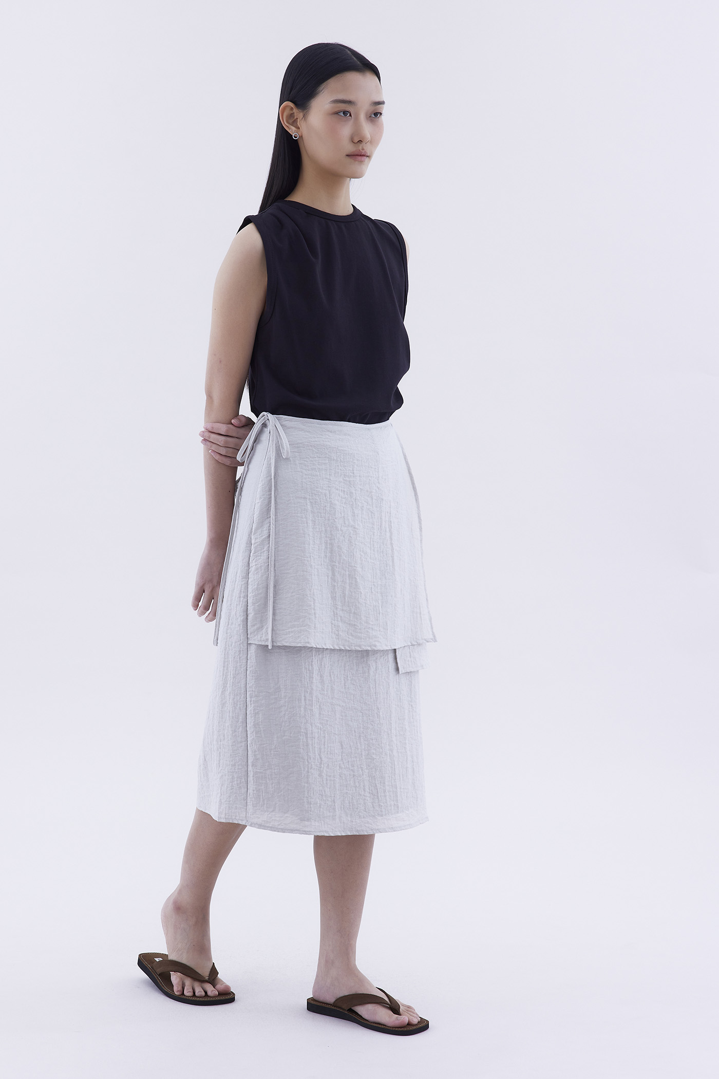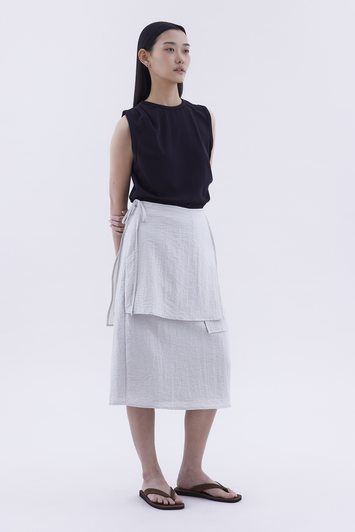 Topping it all off. Made from light and textured fabric, this midi skirt features a layered, wrap-around waist with a side tie-strap, as well as a side zip closure.
