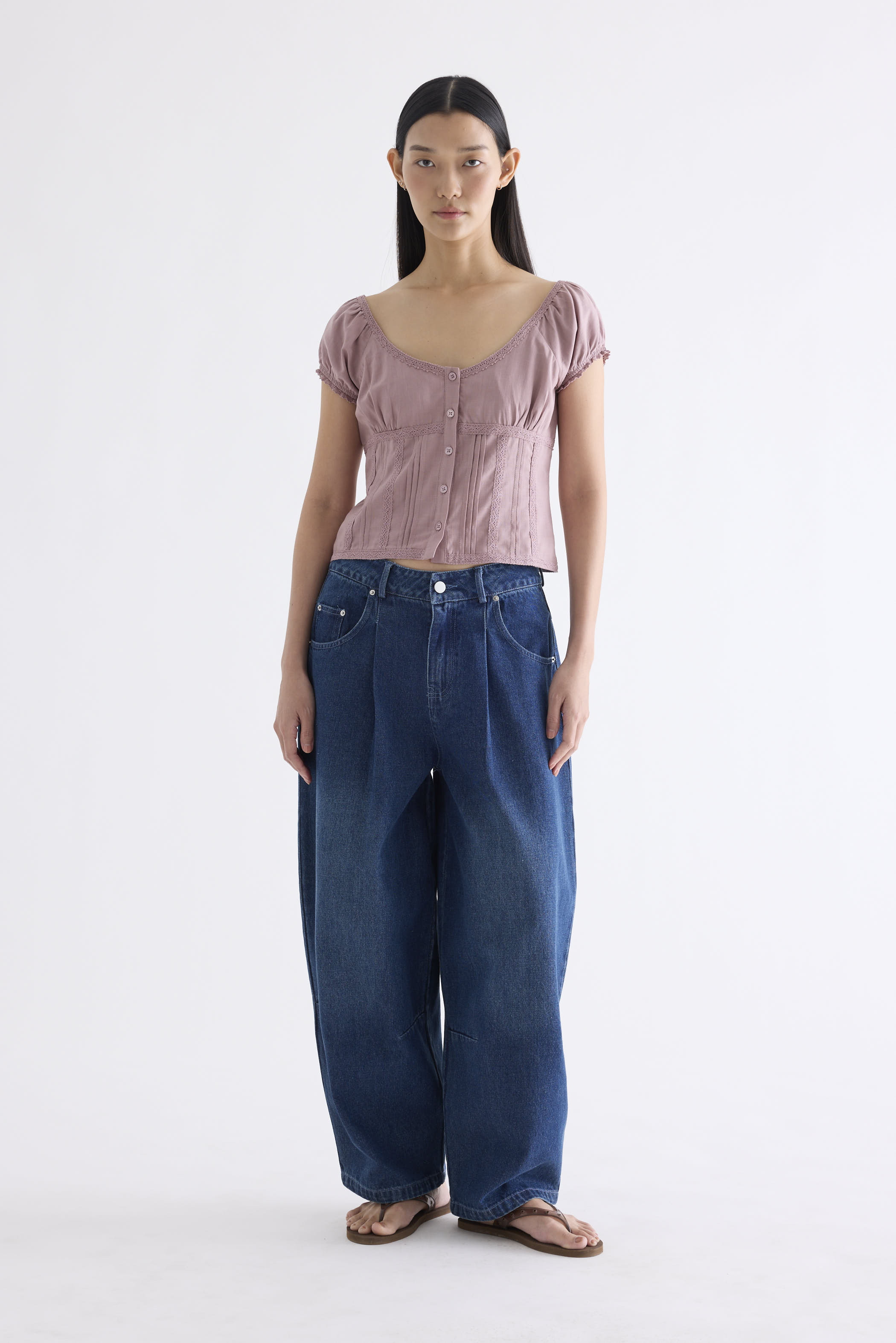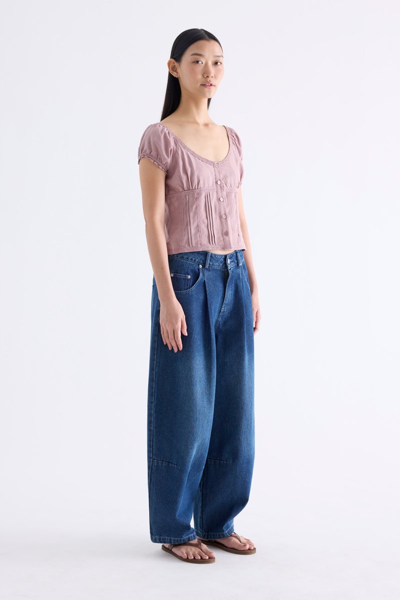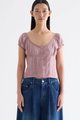 Detail oriented. Made from structured and non-stretch Tencel, this lace-trimmed top features a scooped neckline, elasticated lace-trimmed cap sleeves, pin-tuck pleats and lace panels. Worn in a slim fit with a button-down front.