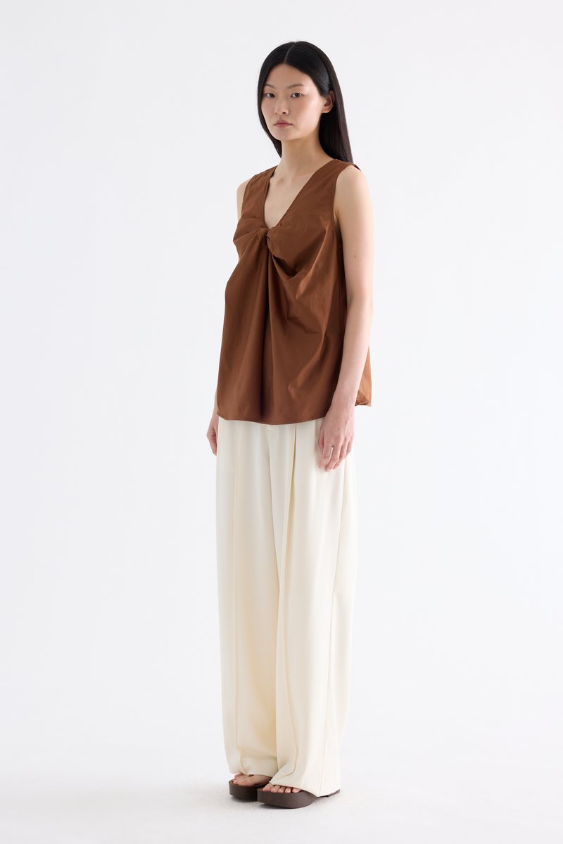 From the Postscript collection. Cut from fully lined cotton with a light and crisp finish, this sleeveless top features a V-neckline with a statement front twist, and a gently flared silhouette. Worn in a relaxed fit.