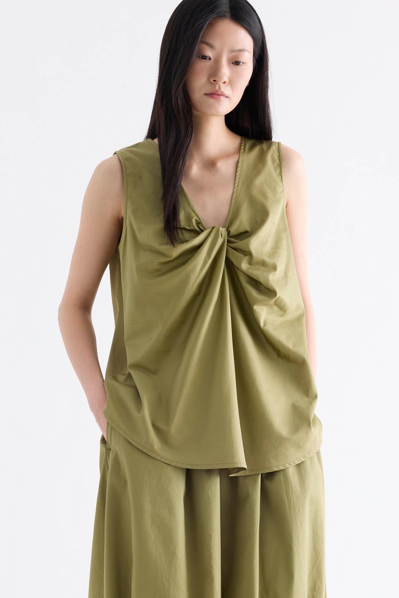 From the Postscript collection. Cut from fully lined cotton with a light and crisp finish, this sleeveless top features a V-neckline with a statement front twist, and a gently flared silhouette. Worn in a relaxed fit.
