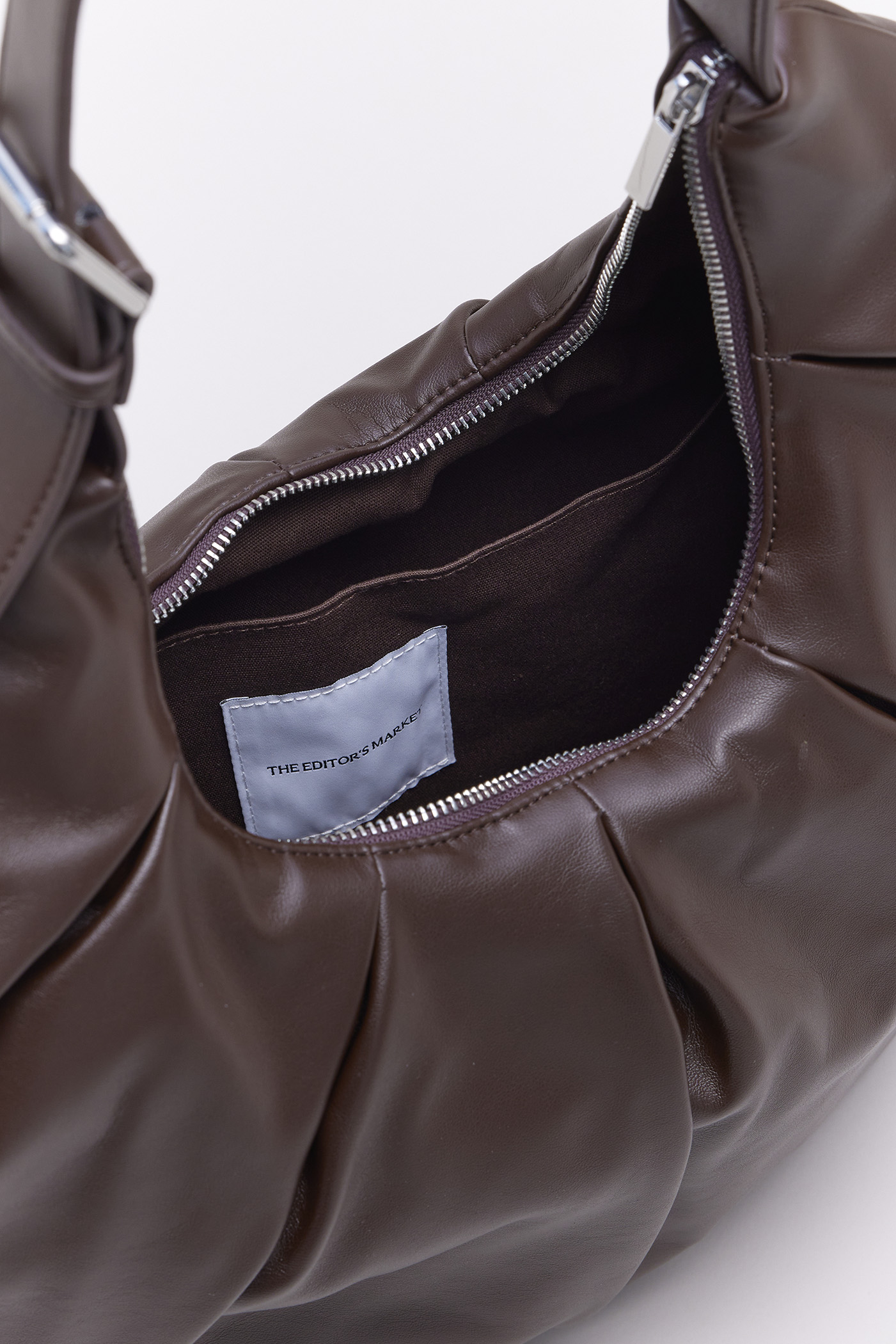 Your new carry-it-all. Made from smooth and fully lined vegan leather, the large version of our Park Bag shows off an expanded hobo silhouette — pleated, rounded and roomy enough for up to a 16” MacBook. Also features a reinforced base, top zip closure, an inner slot pocket with a brand label, as well as an adjustable buckle strap for toting on the shoulder or across the body.