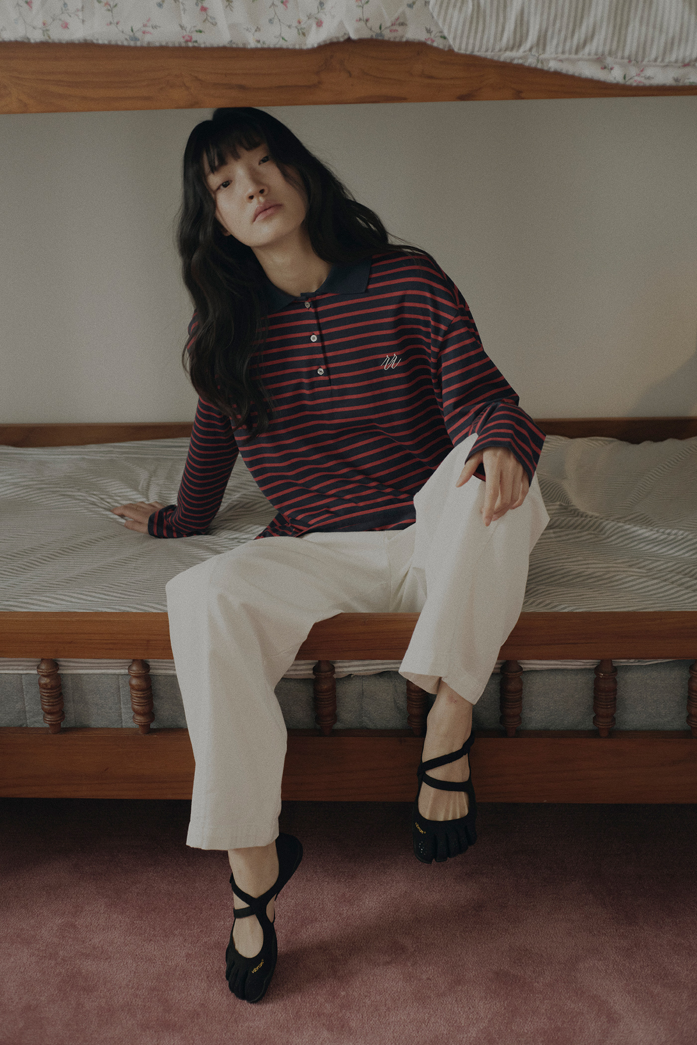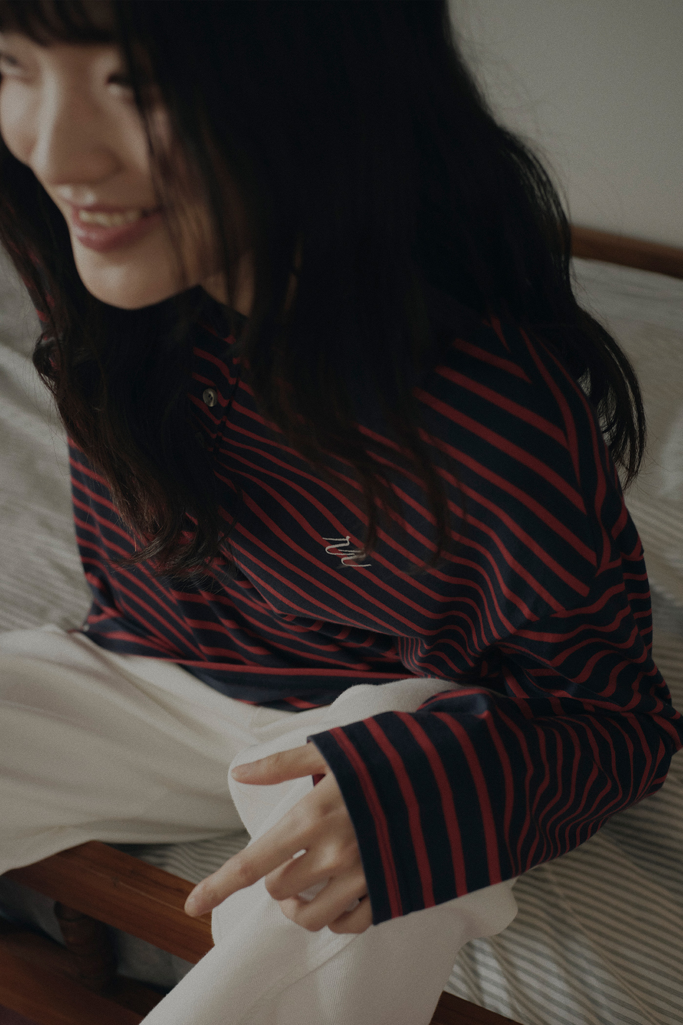 Made from light and comfy cotton, this striped polo shirt features long sleeves, half front buttons and ‘rr’ embroidery on its left chest. Worn in a relaxed fit.