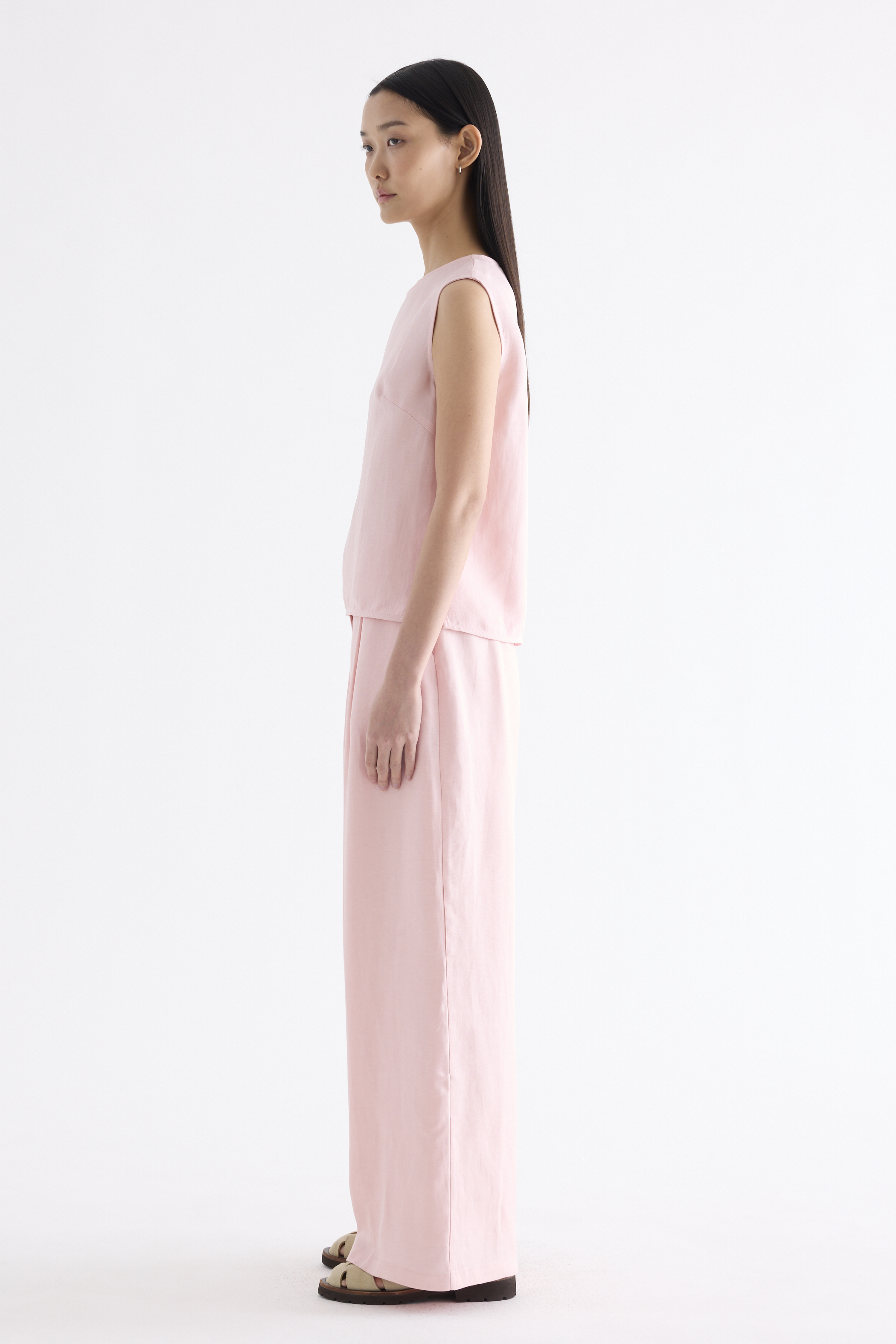 A mix-and-match favourite. Cut from light and softly tailored fabric, this sleeveless top features a round neckline, side splits and a back keyhole opening with a tie-strap closure. Worn in a relaxed fit.