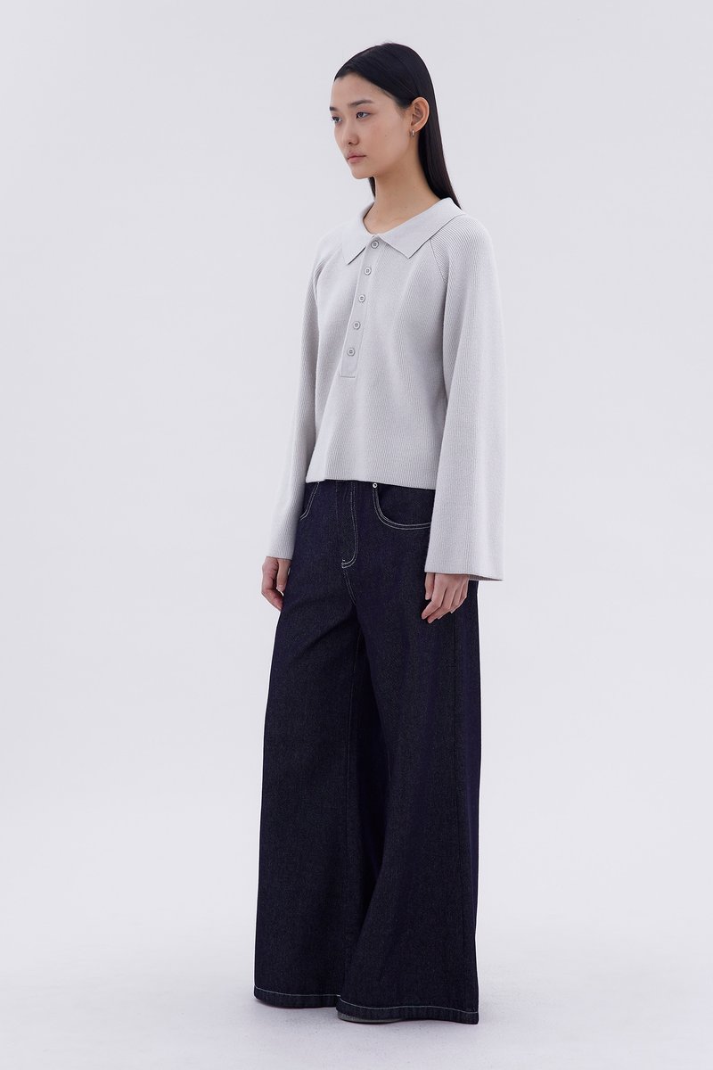 Bundle up. Made from soft and cosy knit, this sweater features a collared neckline and front buttons. Worn in an oversized fit.