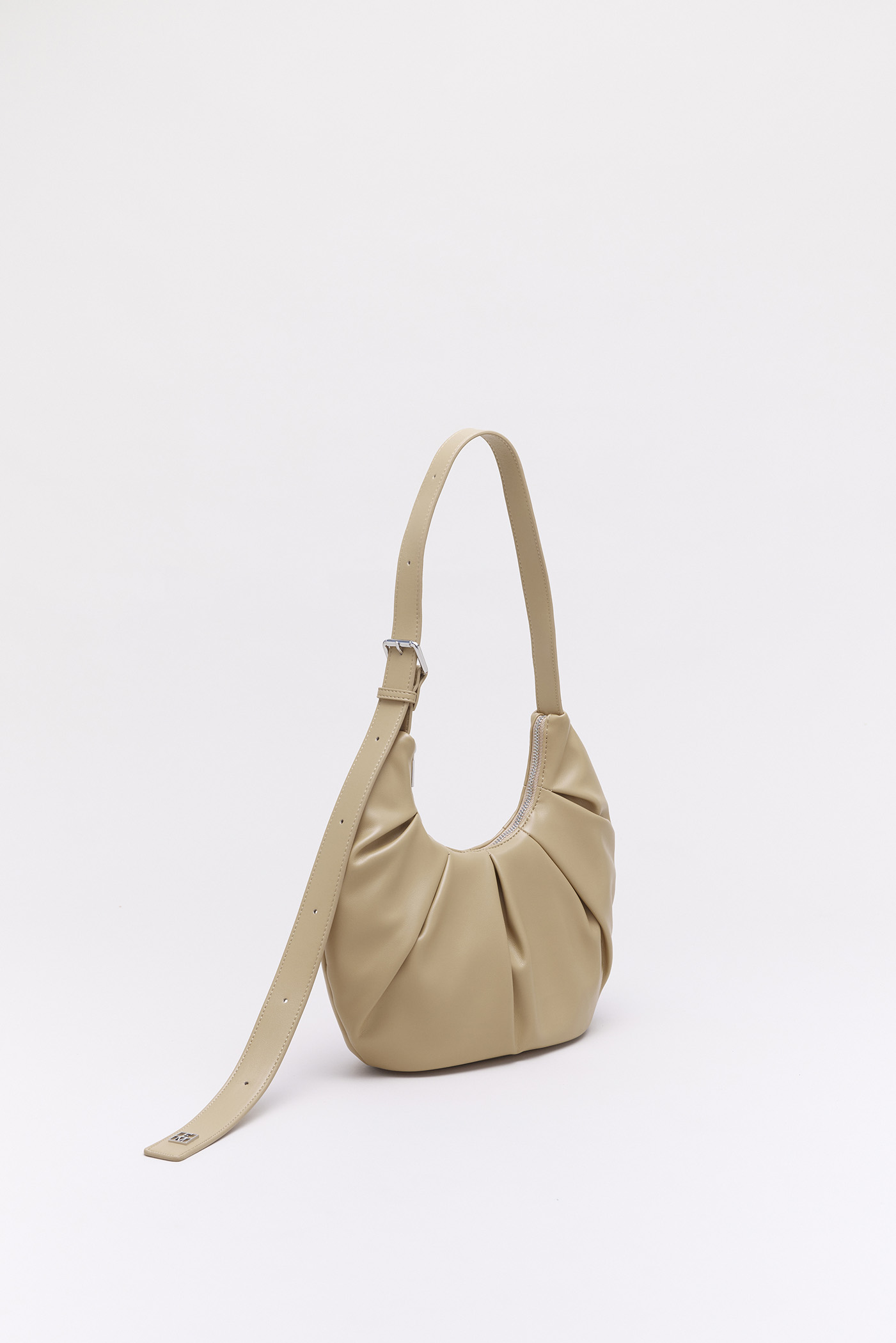 An essential shape. Made from smooth and fully lined vegan leather, our Park Bag shows off a compact, rounded hobo silhouette with statement pleats and enough space for everyday essentials, including larger items like an umbrella and water bottle. Also features a reinforced base, a top zip closure, an inner slot pocket with a brand label, as well as an adjustable buckle strap for toting on the shoulder or across the body.