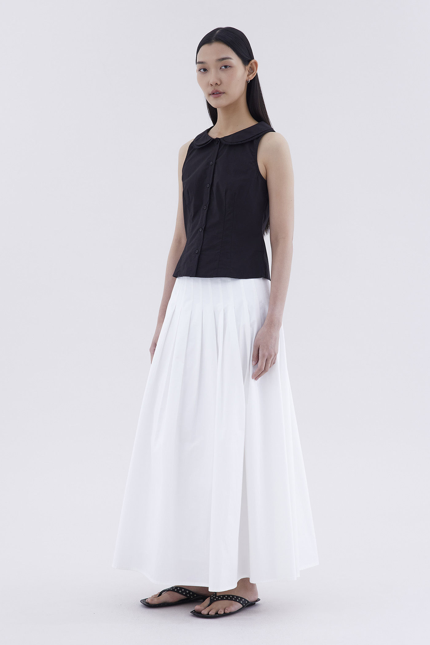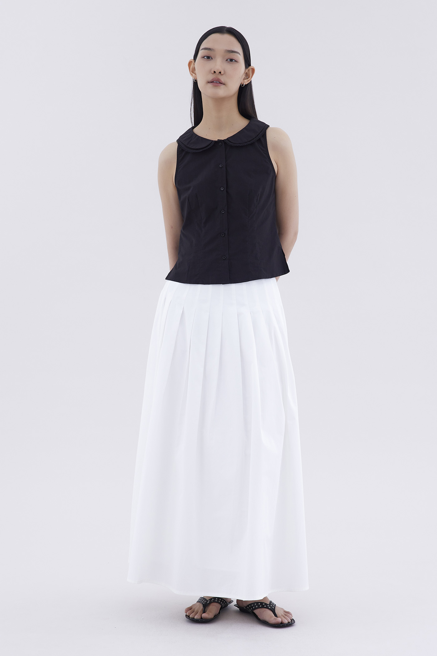 Playful touches. Made from crisp and softly structured cotton, this sleeveless shirt features layered, lace-trimmed collars, a round neckline, panelled construction and button-down front. Worn in a slim fit.