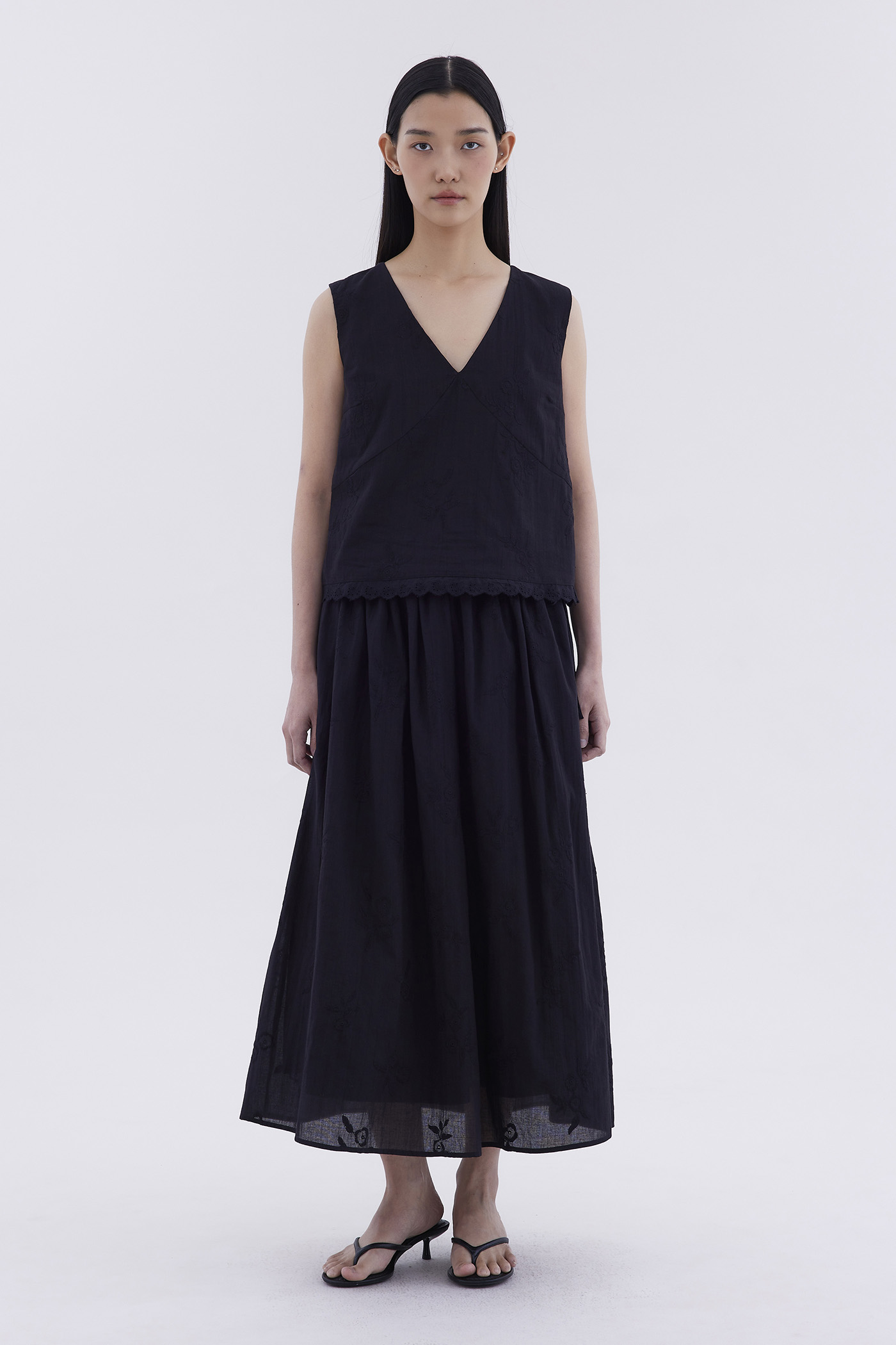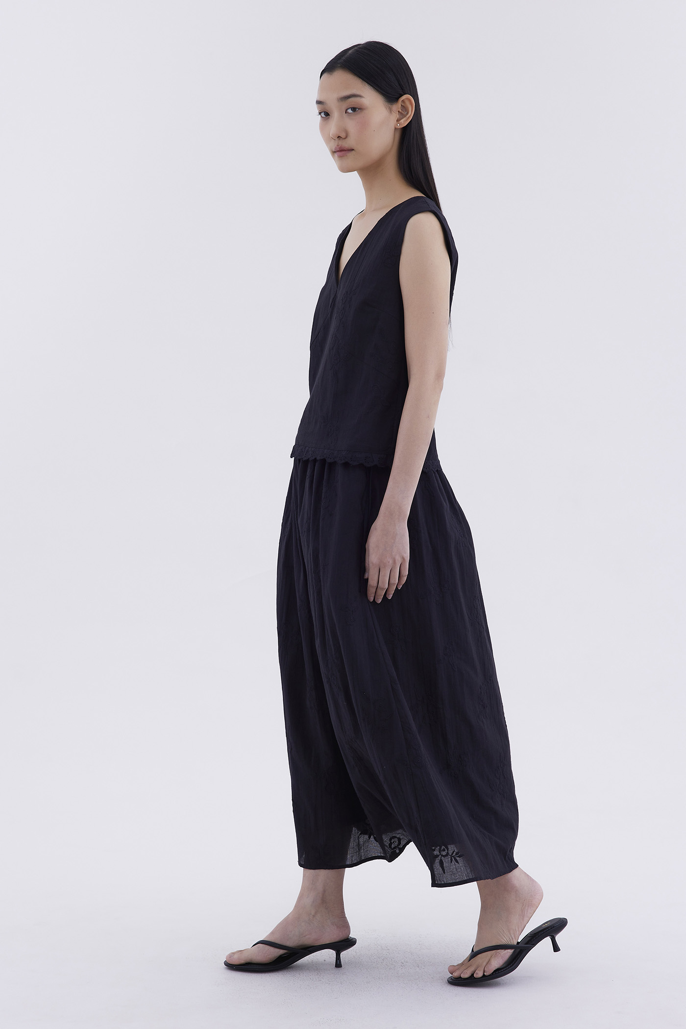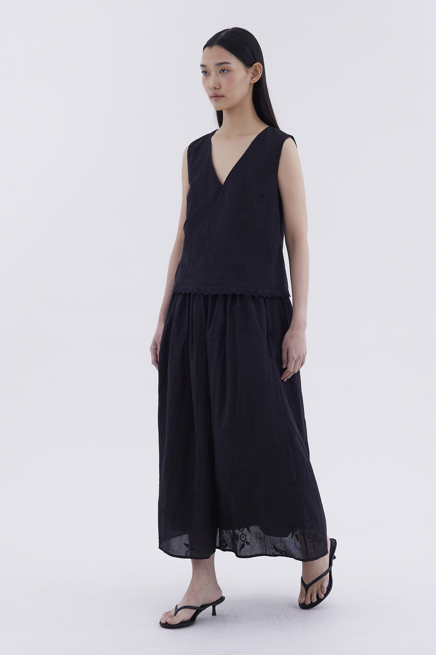 Lasting patterns. Cut from softly structured, floral-textured cotton broderie, this sleeveless top features a V-neckline and lace-trimmed hemline. Worn in a relaxed fit.