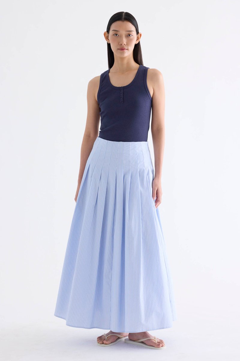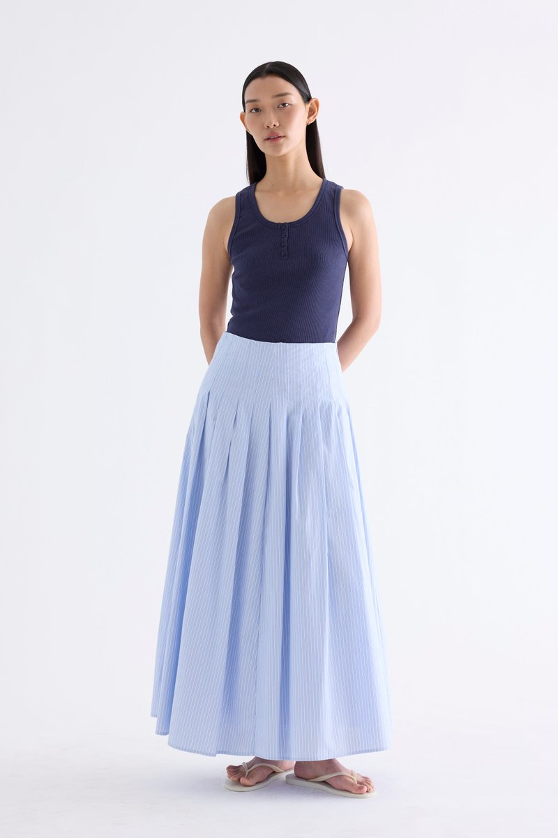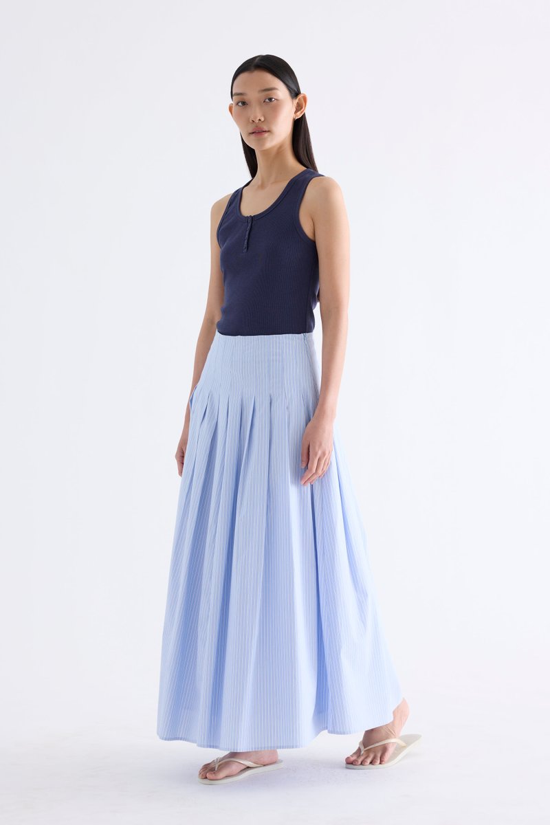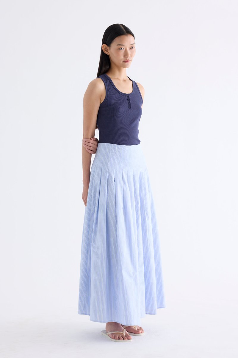 Pleats please. Made from smooth and softly structured cotton, this maxi skirt features pleats and a side zip closure. Worn in a relaxed fit.