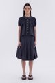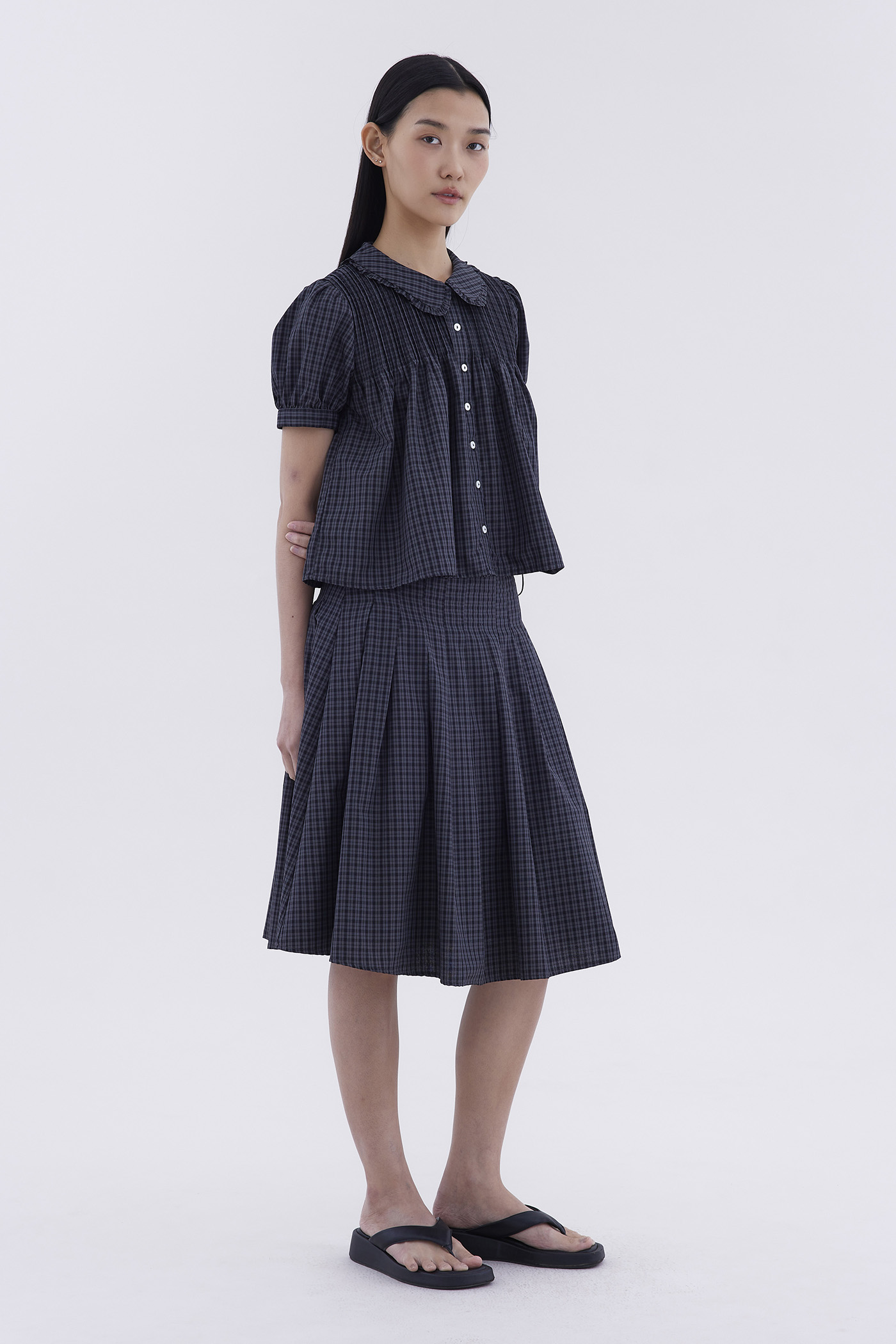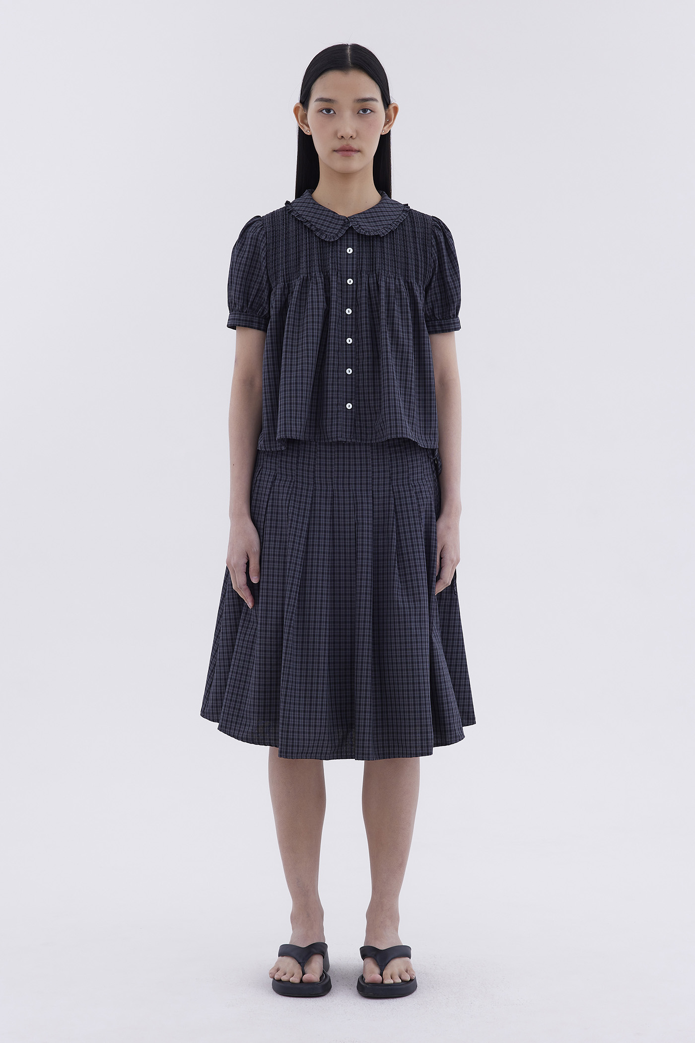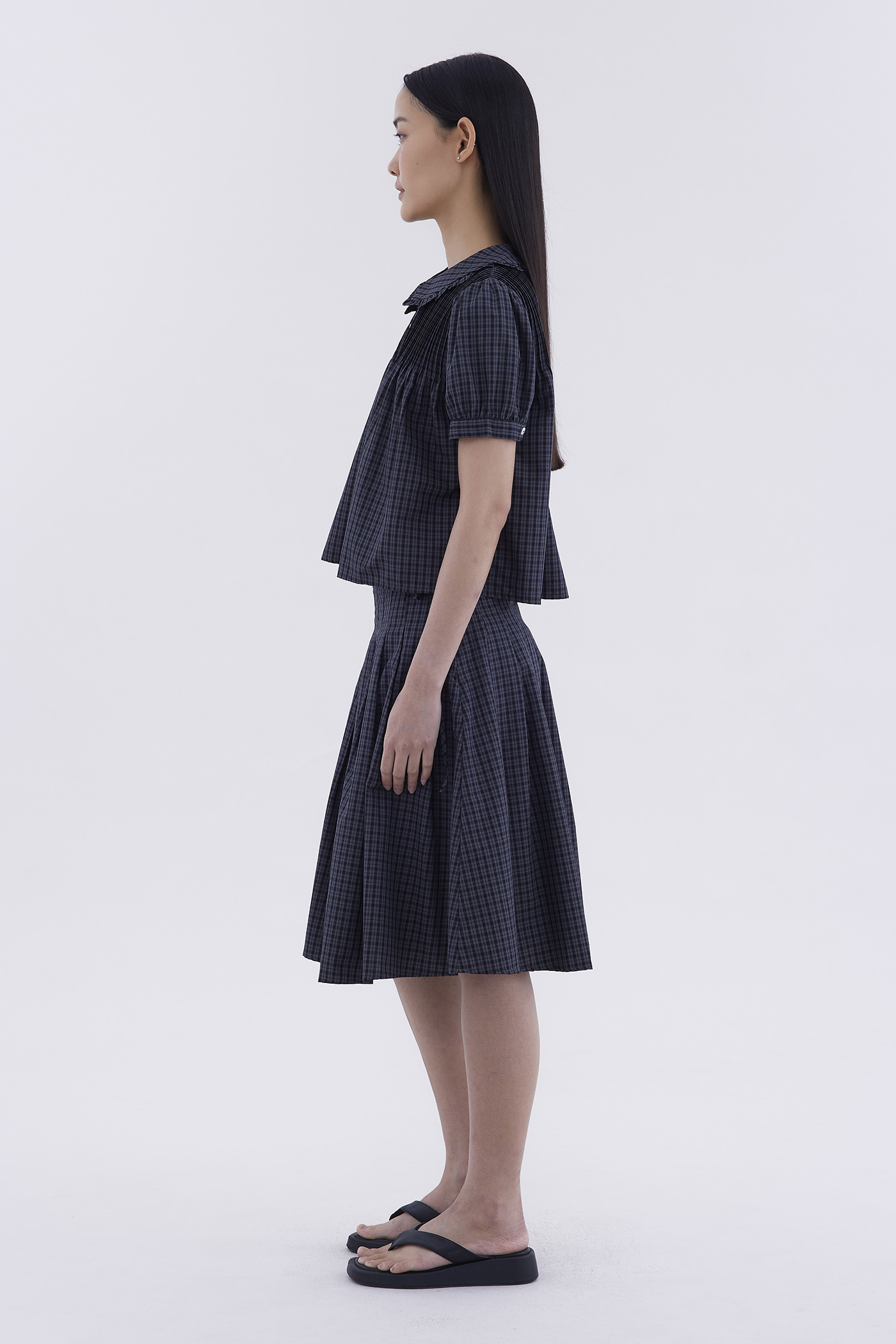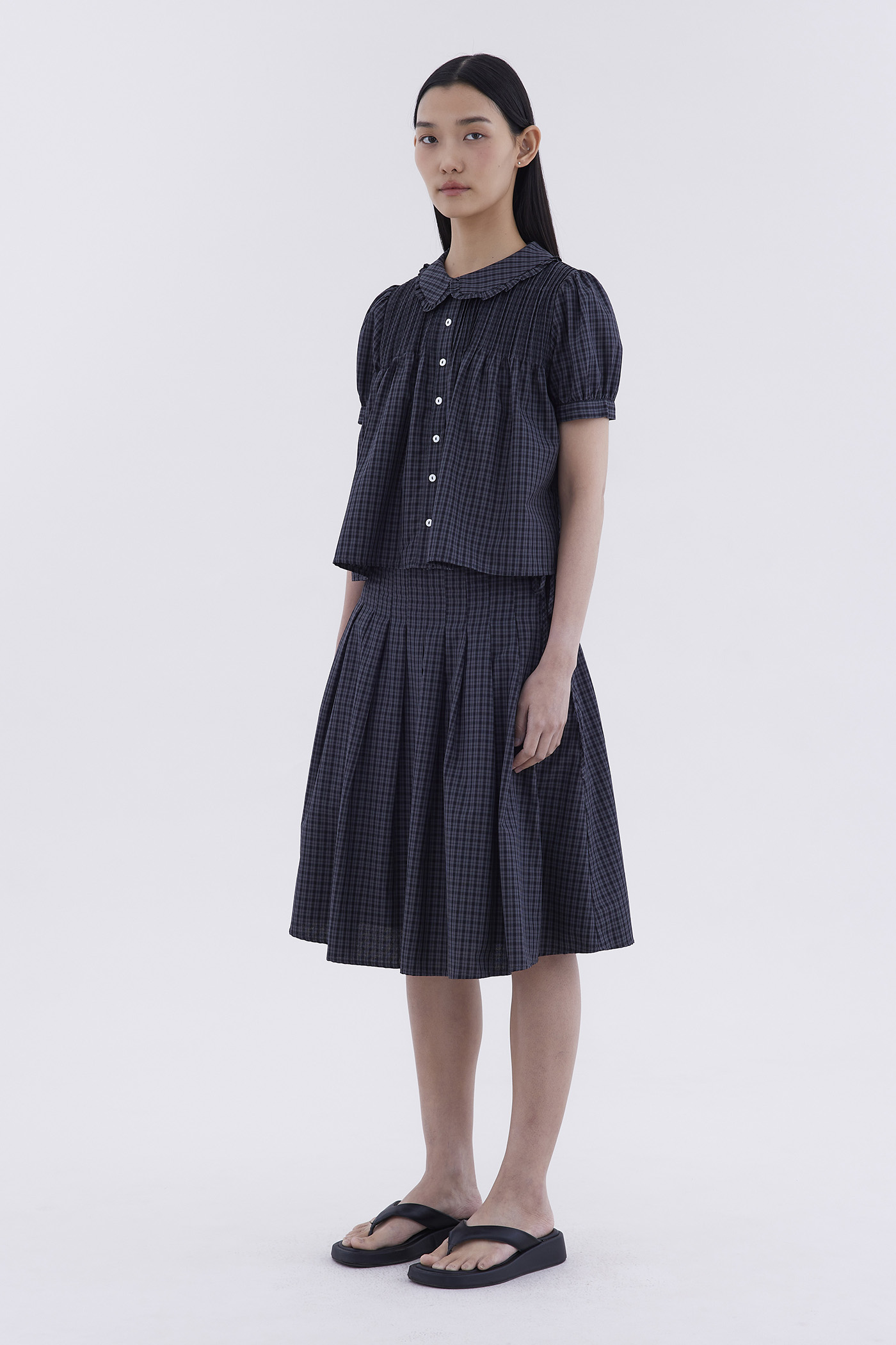Volume up. Made from crisp and softly structured cotton, this shirt features a swishy, flared silhouette, pin-tuck pleats, a ruffle-trimmed collar, puffy short sleeves and a button-down front. Worn in a relaxed fit.