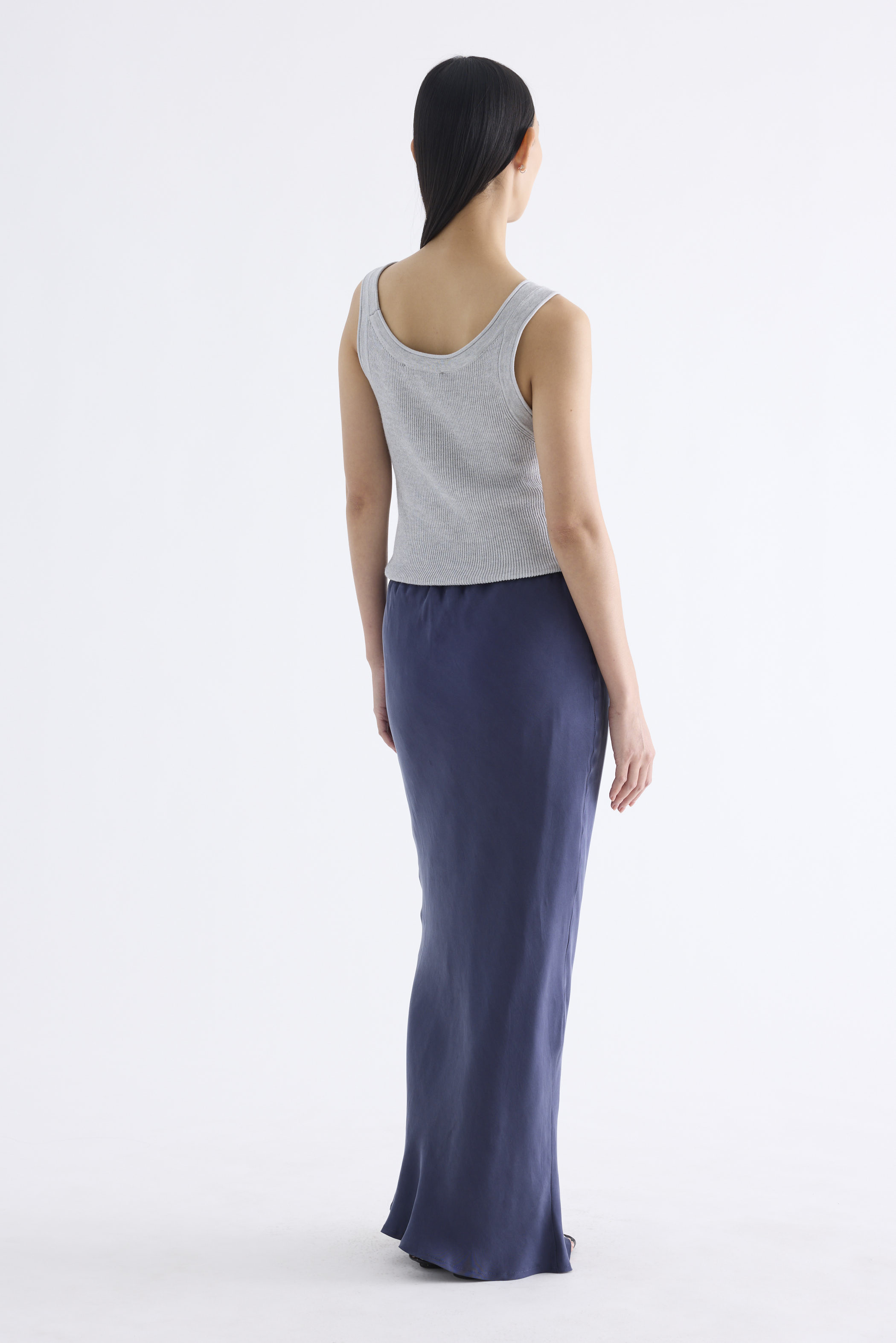 Fluid forms. Made from soft and smooth fabric, this maxi skirt features a bias-cut silhouette with an elasticated drawstring waistband. Worn in a slim fit.